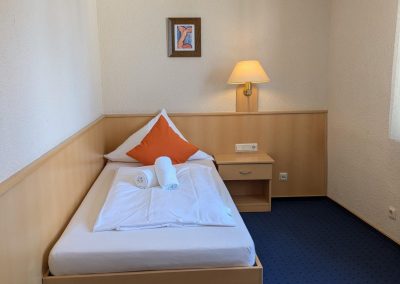 Unsere einladend gestalteten Einzel- und Doppelzimmer verteilen sich auf drei Etagen und bieten Ihnen einen komfortablen Wohnraum.